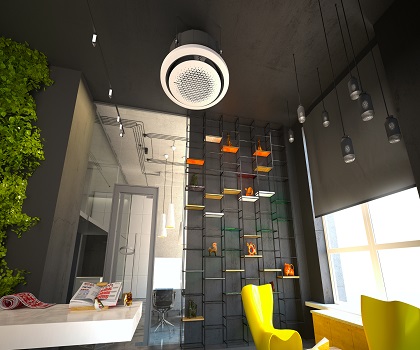 Dengeli hava akışı sağlayamadığından serin havayı her yere eşit bir şekilde dağıtamayan 4 yönlü kaset tipi klimaların aksine* dairesel çıkış kaynağı, serin havayı her yöne üfleyerek odanın her köşesinde sıcaklığın aynı olmasını sağlar.